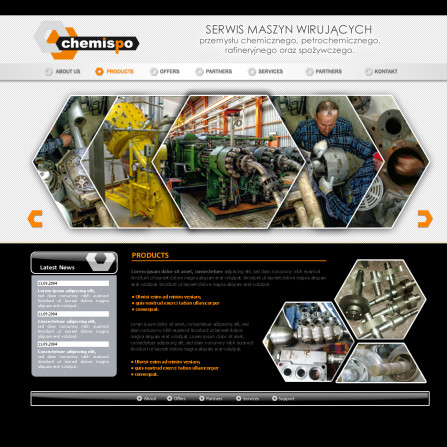 Strona internetowa wysoce specjalistycznego przedsiębiorstwa wykonującego remonty, modernizacje i zapewniającym pełen serwis eksploatacyjny wszelkiego typu maszyn wirujących przemysłu chemicznego, petrochemicznego, rafineryjnego i spożywczego.